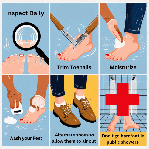 ✅ Inspect your feet daily for cracks or fungal signs
