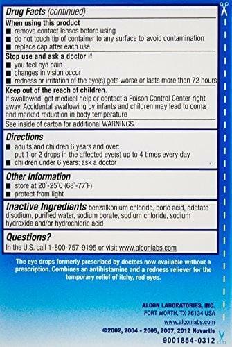 For the temporary relief of redness and itching of the eyes due to ragweed, pollen, grass, animal dander and hair.