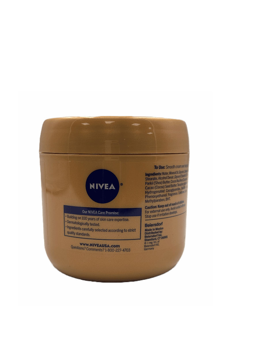 - Nivea Cocoa Butter is infused with Deep Nourishing Serum, Cocoa Butter and Vitamin E.