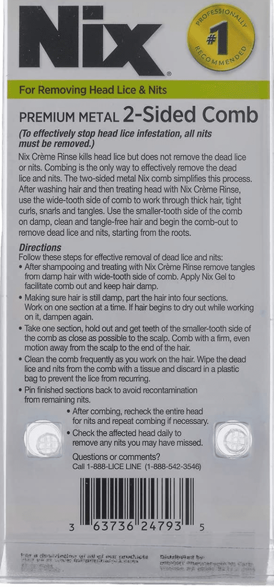 - After shampooing and treating with Nix Creme Rinse remove tangles from damp hair with wide- tooth side of comb. Apply Nix Gel to facilitate comb out and keep hair damp.