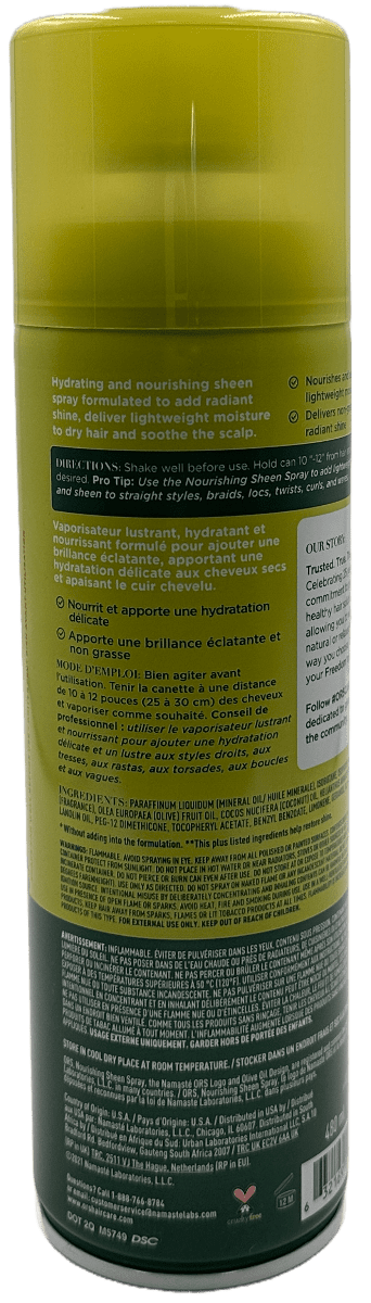 Shake well before use. Hold can 10″-12″ from hair and spray as desired. Pro tip: Use the Nourishing Sheen Spray to add lightweight moisture and sheen to straight styles, braids, locs, twists, curls and waves.